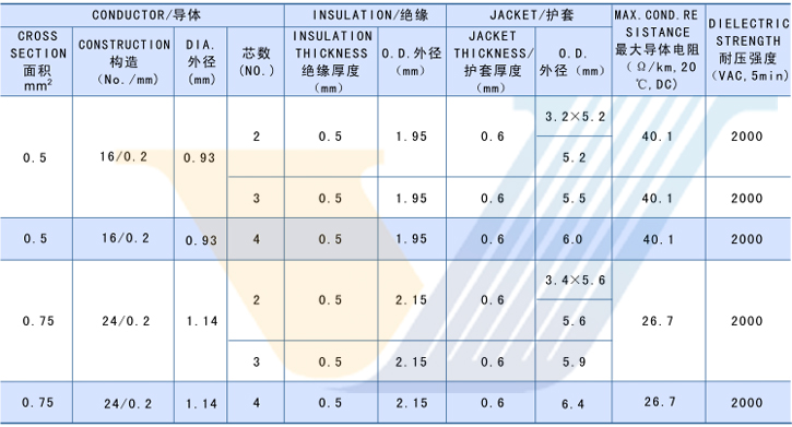 導(dǎo)體使用絞合:0.5-0.75 裸銅或鍍錫